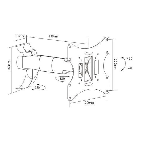 Η βάση τοίχου με βραχίονα της Brateck μπορεί να χρησιμοποιηθεί για την τοποθέτηση τόσο μικρών τηλεοράσεων (από 23 Ίντσες), όσο και μεγαλύτερων, συγκεκριμένα μέχρι και 42 Ιντσών. Για το βίδωμα της τηλεόρασης υπάρχουν υποδοχές 4 διαφορετικών τύπων Vesa, μεταξύ των οποίων βρίσκονται και οι δημοφιλείς 200×200 και 100×100 (δείτε όλους τους συμβατούς τύπους στα Χαρακτηριστικά Συμβατότητας). Με τις δυνατότητες για κλίση και περιστροφή, μπορείτε να την προσαρμόζετε πάνω – κάτω και αριστερά – δεξιά όπως θέλετε.